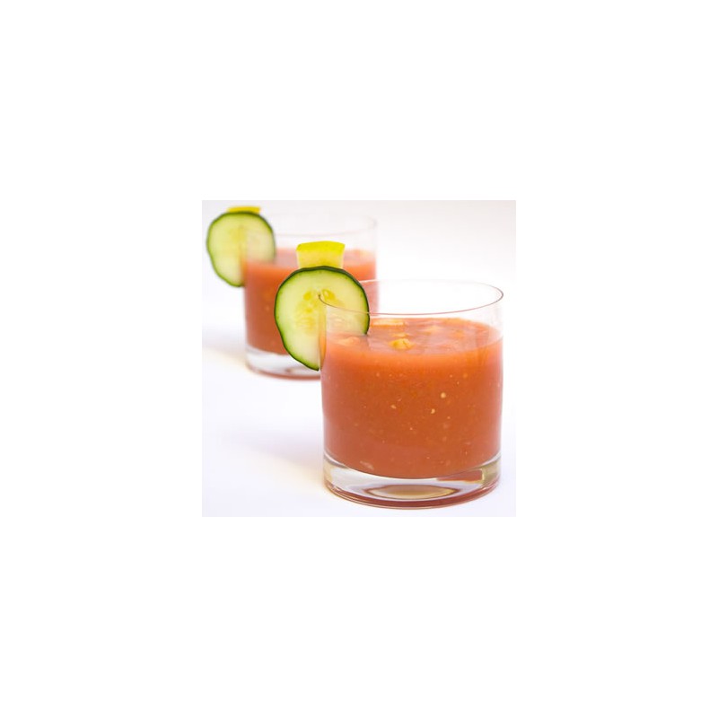 Tomate, agua, aceite de oliva, sal, vinagre y ajo.